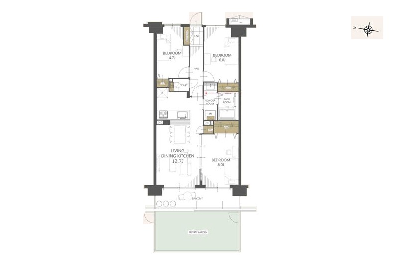 - LDK12.7畳 / 洋室6.0畳 / 洋室4.7畳