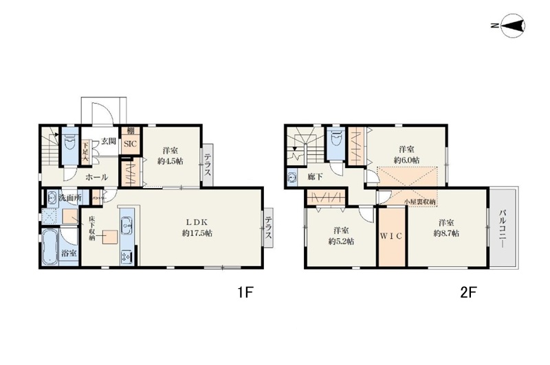 - 1階 LDK17.5畳 / 1階 洋室4.5畳 / 2階 洋室8.75畳 / 6階 洋室6畳 / 2階 洋室