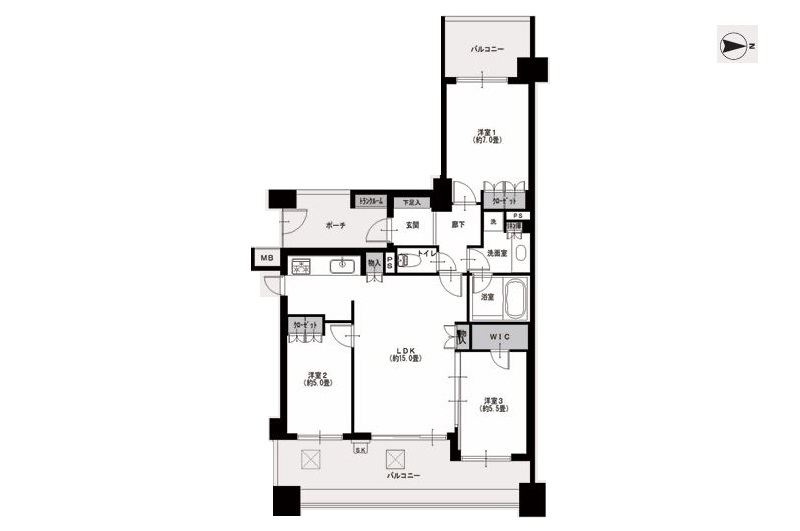 - LDK15.0畳 / 洋室7.0畳 / 洋室5.5畳 / 5.0階 洋室5.0畳