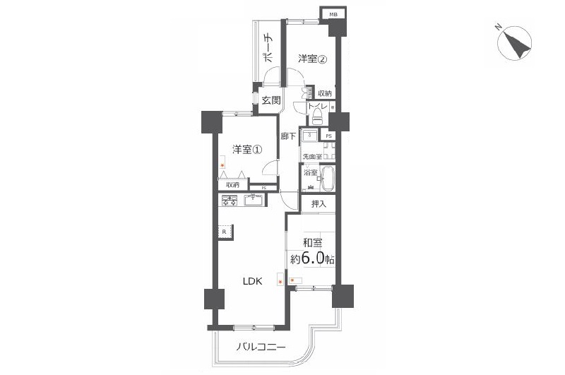 - ペット不可 / システムキッチン / オートロック / 防犯カメラ / エレベータ / 駐車場有 / 駐輪場 / バイク置き場 / バルコニー