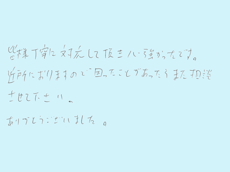 三ツ境エリアに密着している貴社こその融通のきく対応で非常に満足しております。